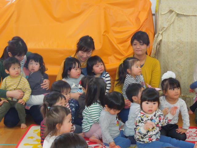 話が進み、怖いやまんばが登場すると怖くて保育教諭にしがみつき、涙する子も・・・。