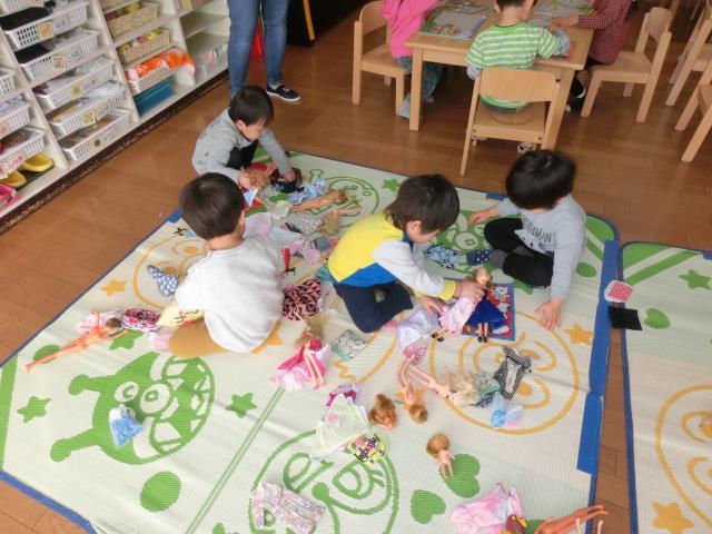 自分達でリカちゃんの お洋服を選んで着せ、園でお昼寝をさせていました。