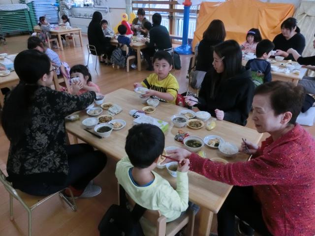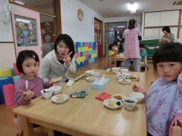 今日は、さくら組のお母さん・おばあちゃんが給食を食べに来てくれました。