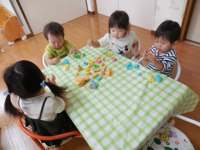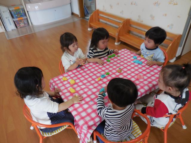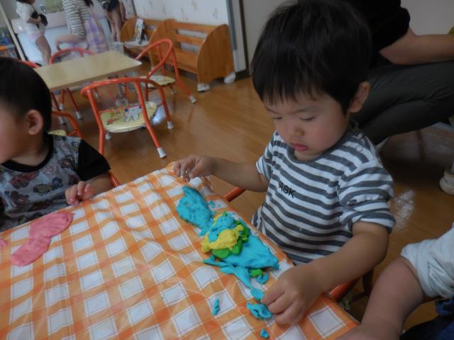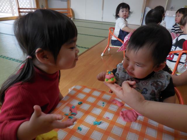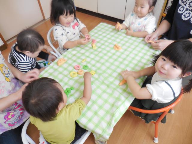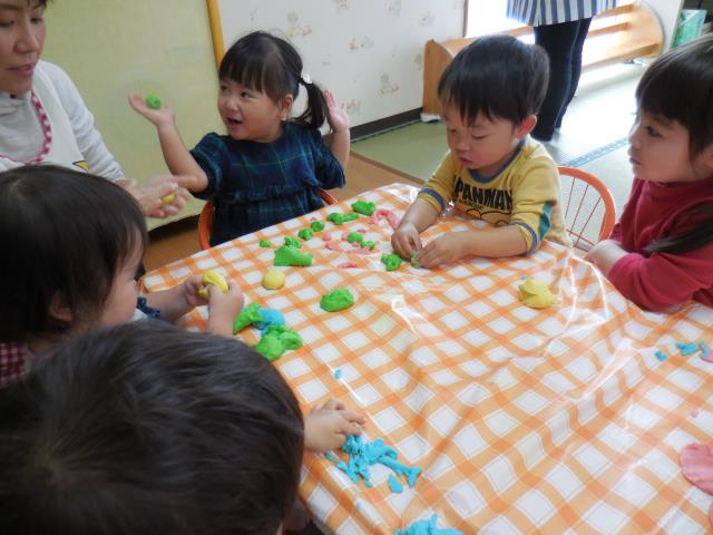 つくし組さんは、初めて‟小麦粉粘土”をして遊びました。