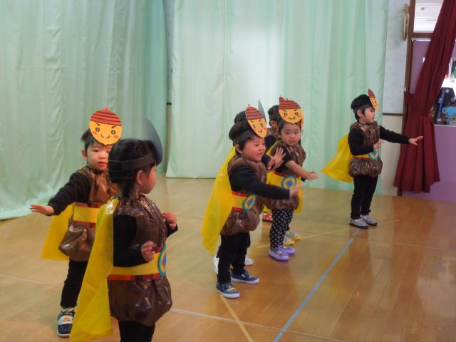 小さいクラス同様、本番の衣装を身に付けて少々緊張気味な表情でしたが、精一杯 頑張っていました。