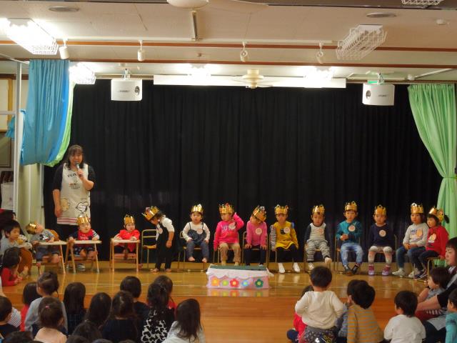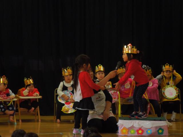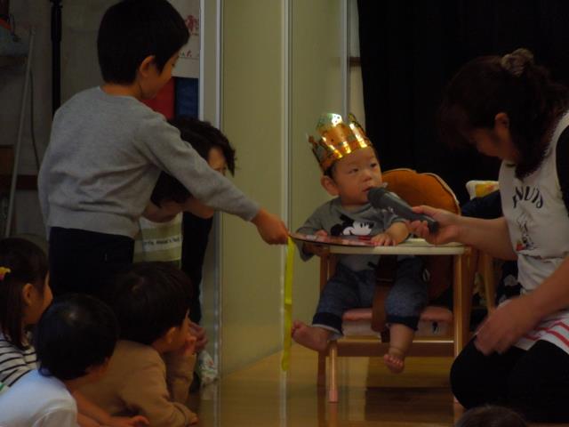 今月は、4,5歳児クラスのお誕生はいませんでしたが、小さいお友だちでお話を出来る子は、インタビューにしっかり答えていましたよ。
