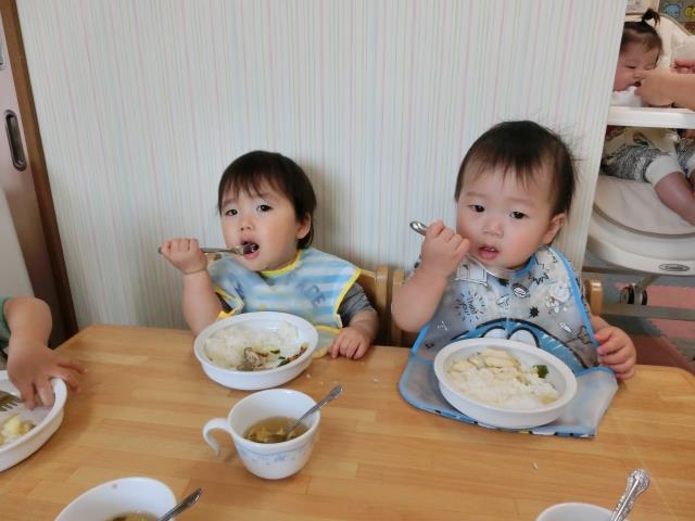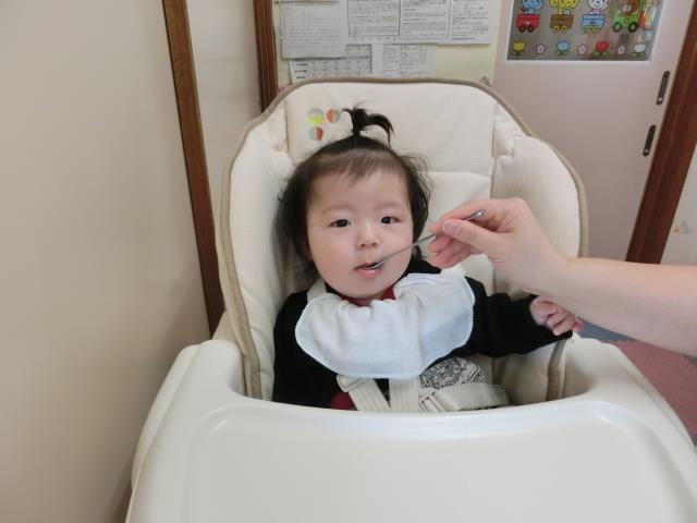 クラスで1番小さなお友だちも離乳食が始まりました。