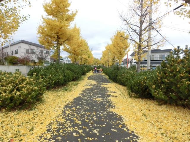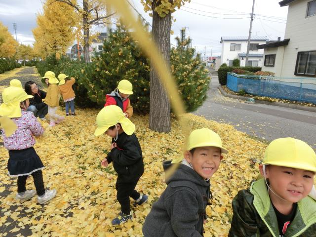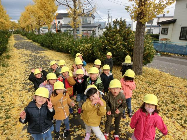 ちゅうりっぷ組さんは、遊歩道へお散歩に行き、イチョウの絨毯の上で遊んで来ました。