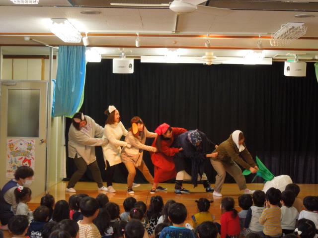その後は先生方の劇『おおきなかぶ』を大盛り上がりで見ました。