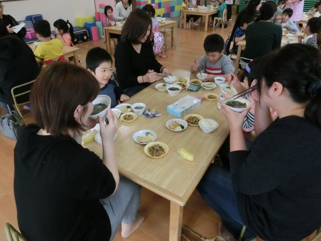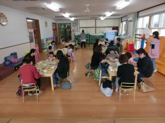 残念ながら、お母さんが来られなかったお友だちは、先生方と食べましたよ。