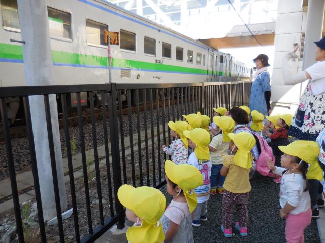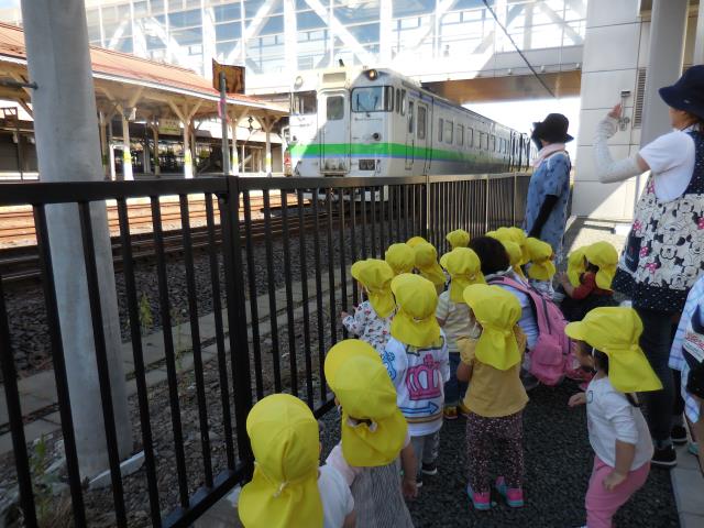 ちょうど‟東相内”行きのJRが来て目の前で止まり、汽笛を鳴らしてくれました。