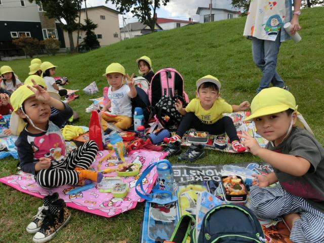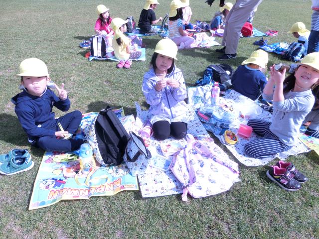 1度 園に戻って来てから、お弁当をもって なかよし公園へ。