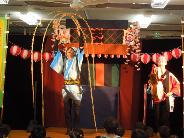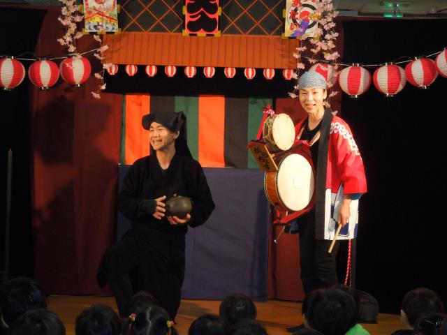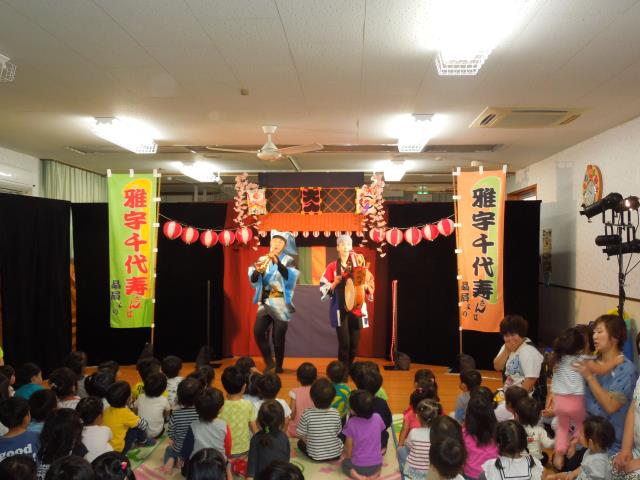 チンドン屋さん・南京玉すだれ・人形劇『ぶんぶく茶がま』を見せてくれましたが、どれもみんな楽しくて、子ども達は大盛り上がりでした。