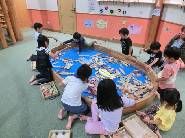 ちぎったりは、まだ難しかったですが、丸めてもらった新聞紙を投げたり、作ってもらったカブトをかぶったり、端切れを振ったり。