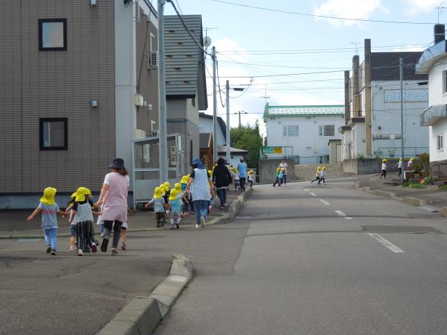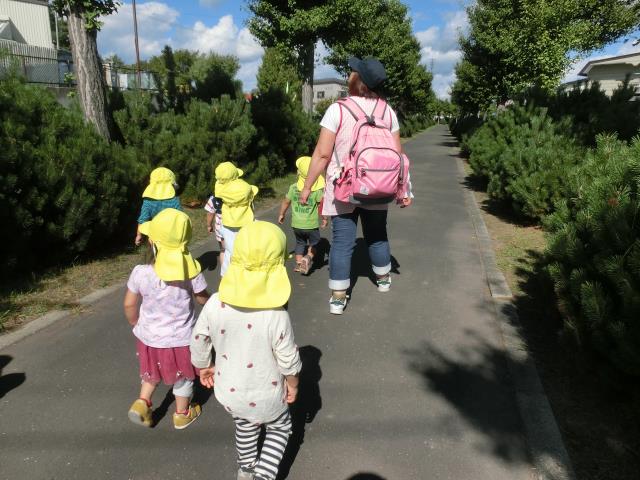 ひよこ組さんは、遊歩道までまでお散歩に出掛けました。