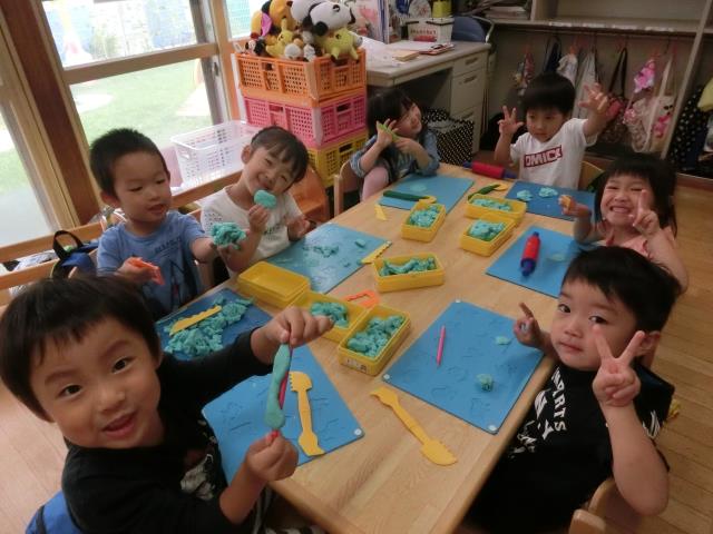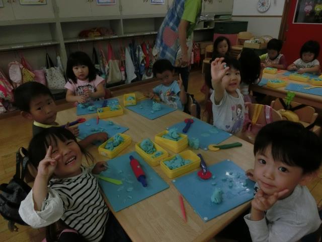 ちゅうりっぷ組さんは、のんびりと粘土をしました。