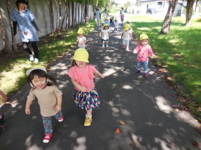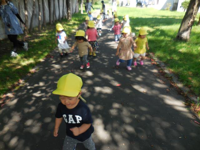 つくし組さんは、遊歩道までお散歩に行って来ました。