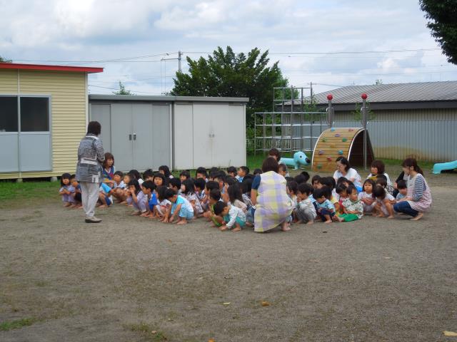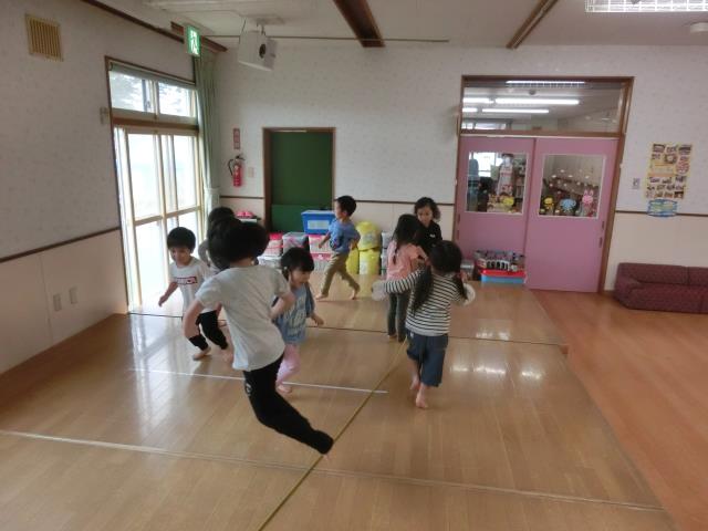 その後は、先生方のペープサート『おもちゃのチャチャチャ』を手拍子をしながら楽しく見ました。