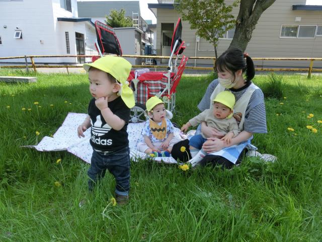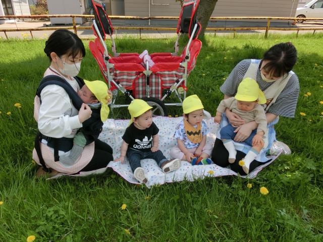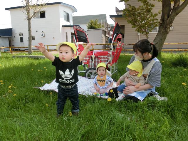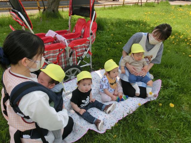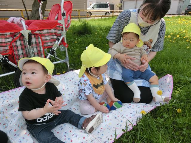 公園では敷き物に座って、しゃぼん玉を見たり、周囲の自然に触れて楽しんできましたよ~!