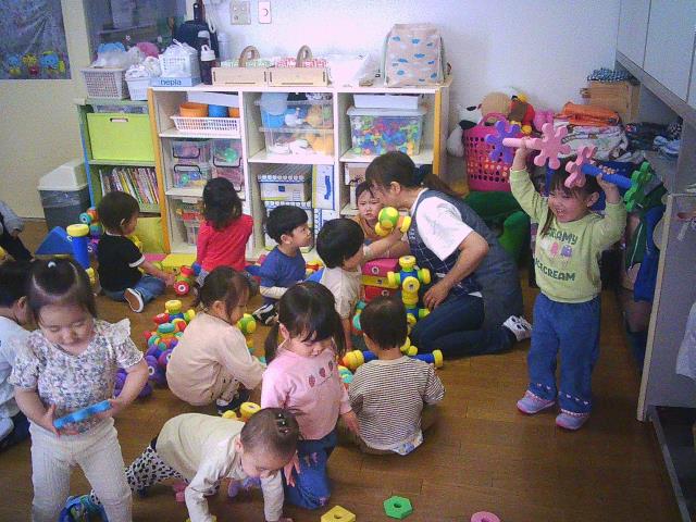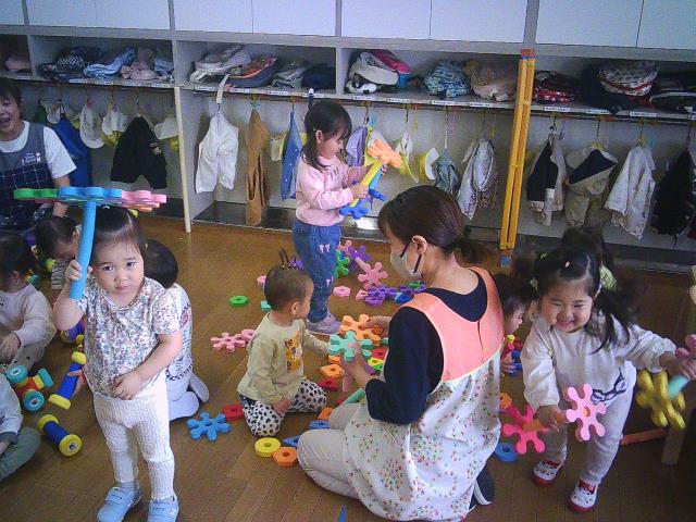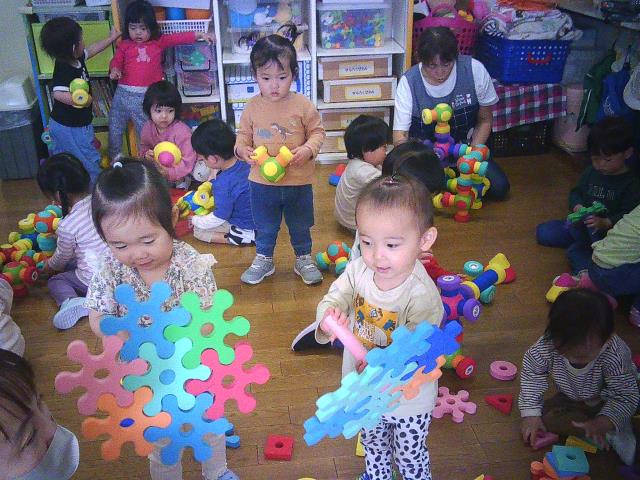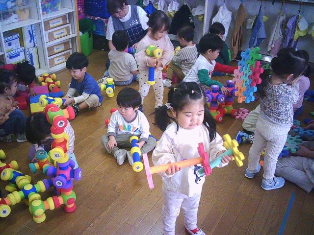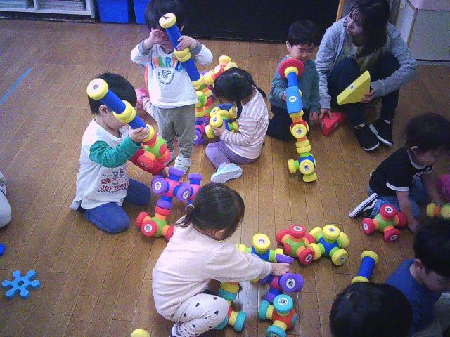 お友だちと仲良く積み上げたりくっつけたりと、楽しそうに遊んでいた子ども達です。
