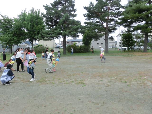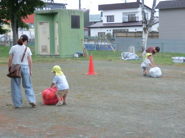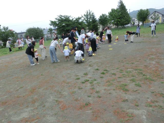 お父さんお母さんと一緒に絵合わせゲームをしたり、大玉ならぬ中玉転がしをしたり、アイスリレーをしたりと沢山体を動かし楽しみました。