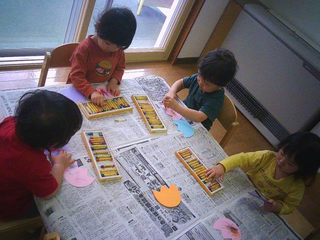 今日のたんぽぽぐみは、お部屋で製作に取り組んでいます。