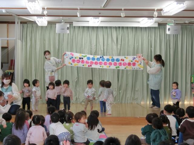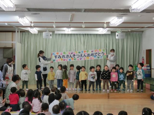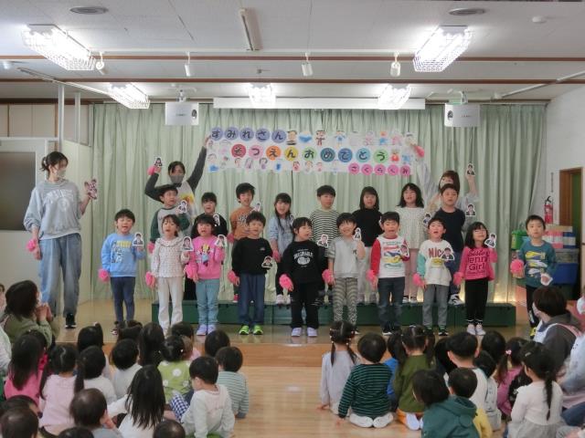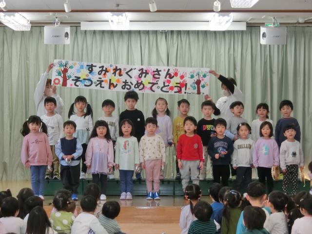 今日はもうすぐ卒園する、すみれぐみのお別れ会を行いました。