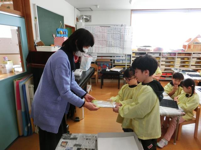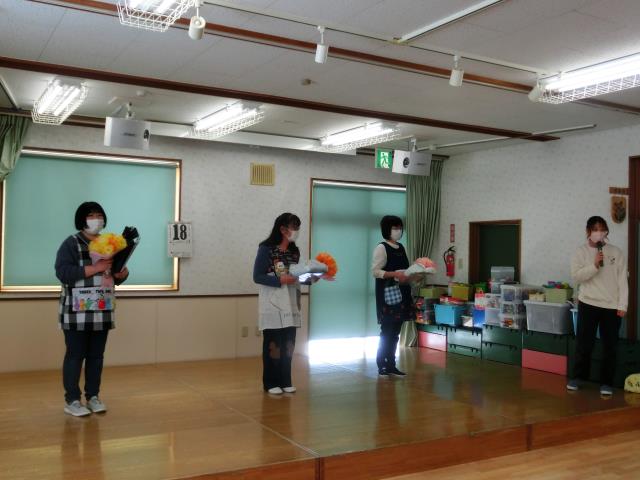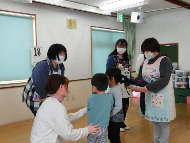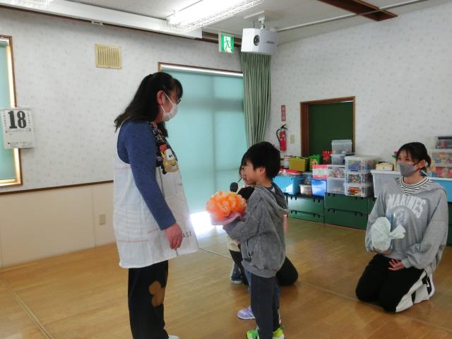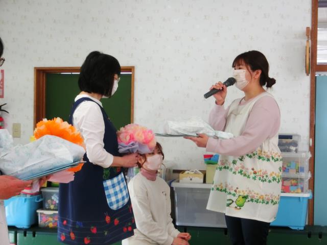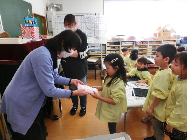 プレゼンターはちゅうりっぷ・さくら・すみれぐみのお当番さんが担当し、「ありがとう」と感謝の言葉も伝えています。