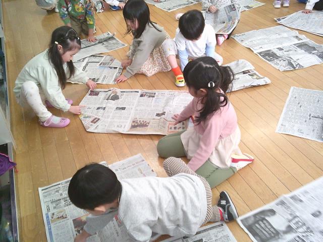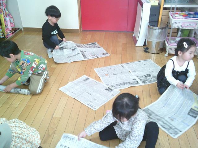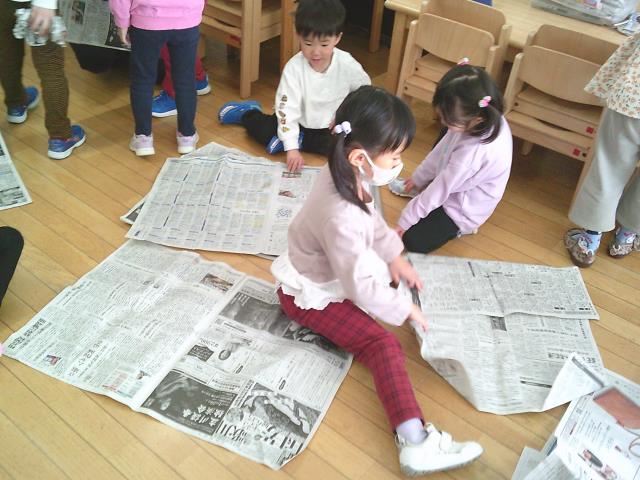 今日のちゅうりっぷぐみは新聞あそびを行っています。