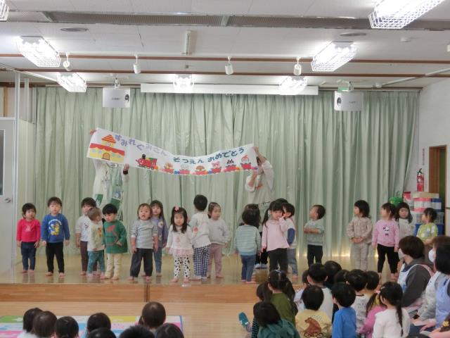 今日はお別れ会2日目ということで、すみれぐみさんが『まつり太鼓』と歌2曲を披露してくれました。
