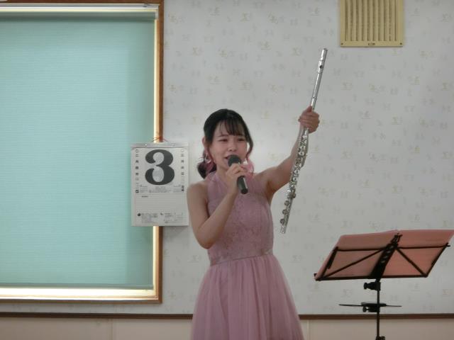 その後、フル-ト演奏者:志賀 ななみさんをお迎えして、コンサ-トを開いて頂きました。