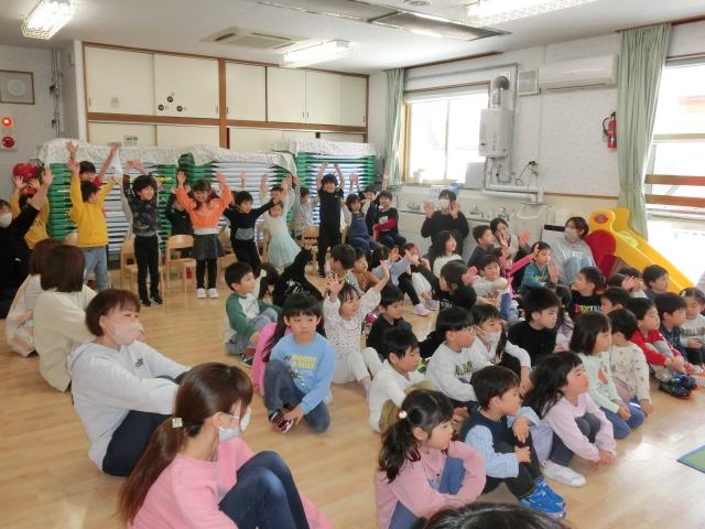 園長先生からひなまつりのお話を聞いたり、「うれしいひなまつり」をみんなで歌いお祝いをしました。