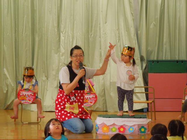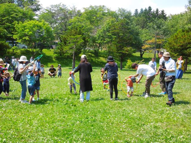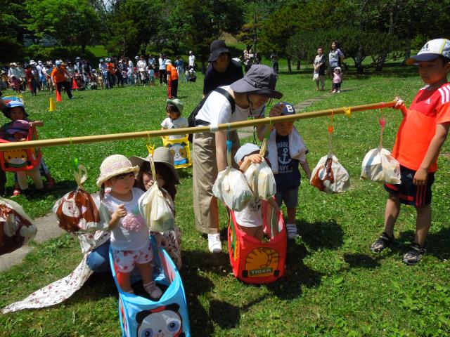 公園での親子ゲームでは、卒園児のお兄さん・お姉さんがお手伝いをしてくれました。