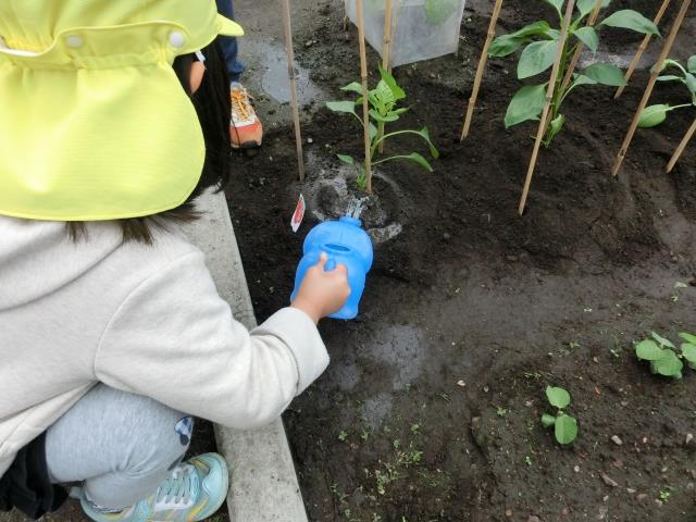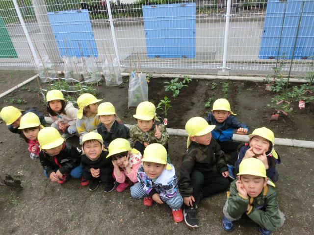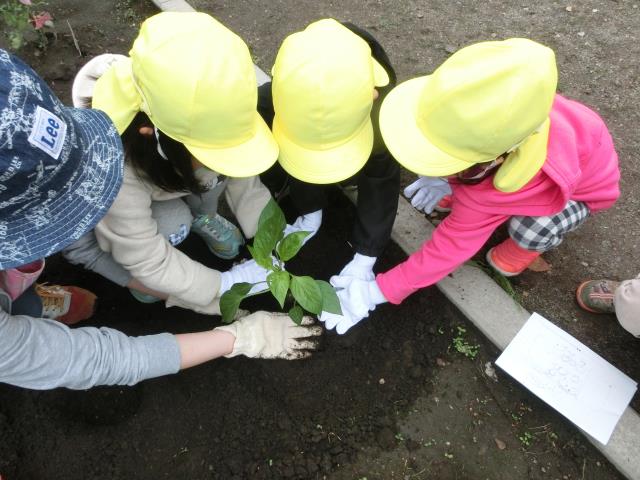 残念そうな子ども達のために、園長先生が『ズッキーニ・芽キャベツ・赤ピーマン・黄ピーマン』の苗を探してきてくれました。
