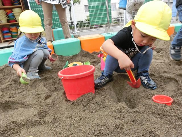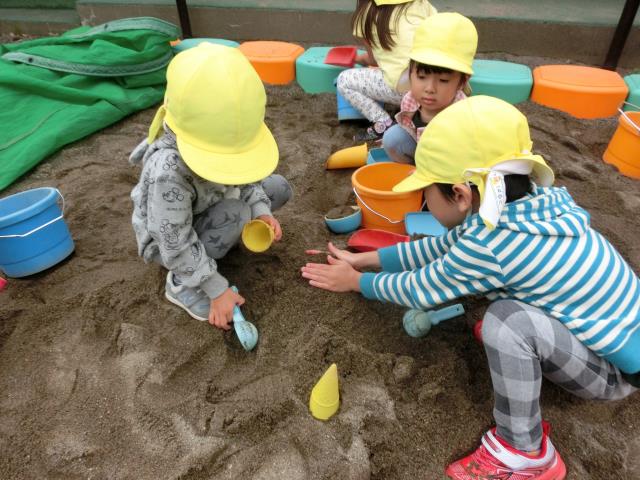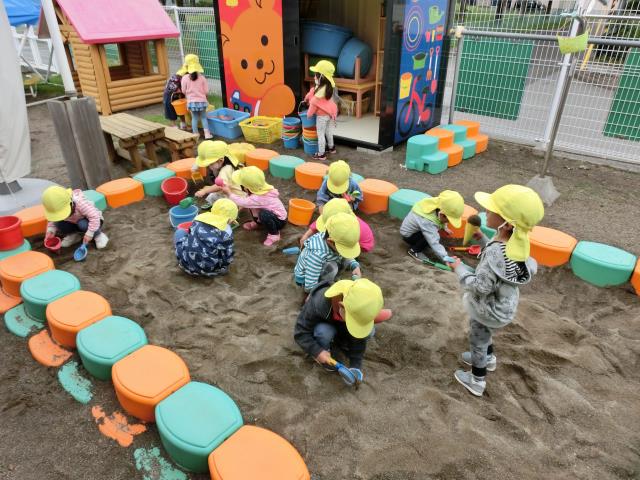 お山を作ったり、穴を掘ったり、アイスを作ったりと思い思いに楽しんでいました。