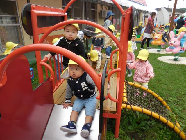 すべり台を滑ったり、トンネルくぐりをしたり、たくさん体を動かし、元気いっぱいの子ども達でしたよ!