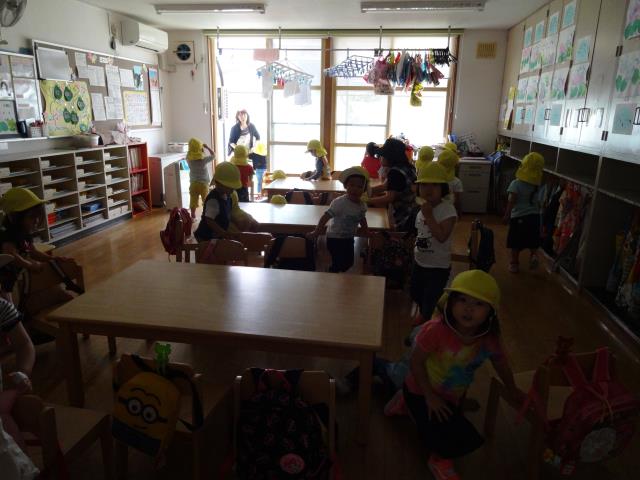全員 ケガなく避難でき、園長先生からのお話を聞いてから終了となりました。