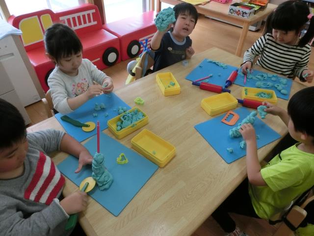 さくら組さんは、粘土をして遊びました。