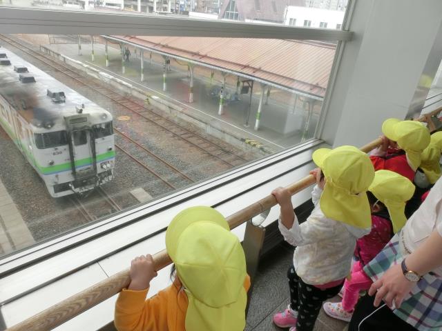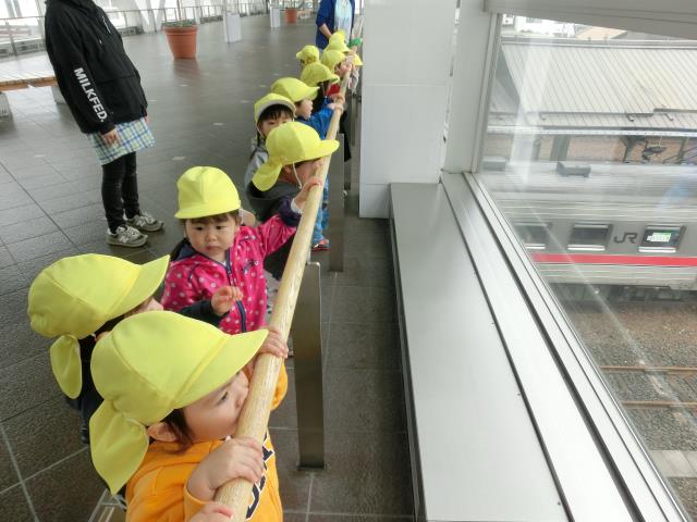 たんぽぽ組さんは、大好きな列車を見にプロムナードまで行って来ました。