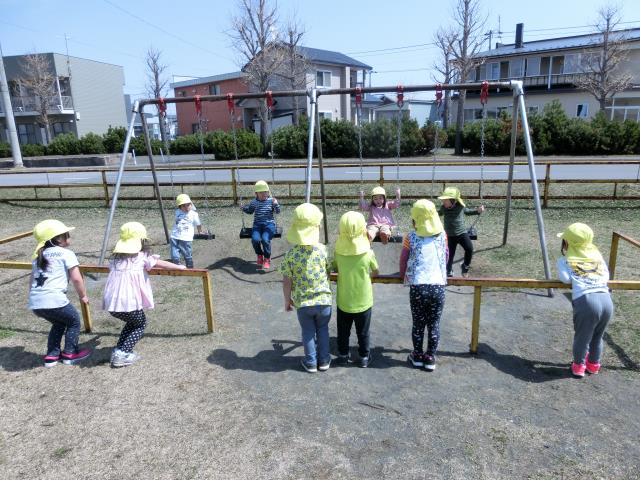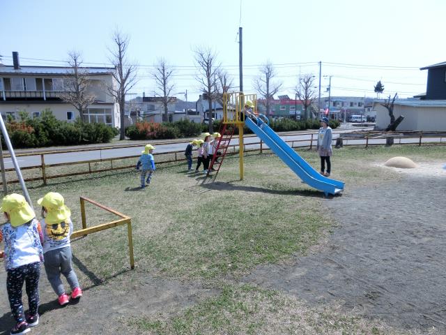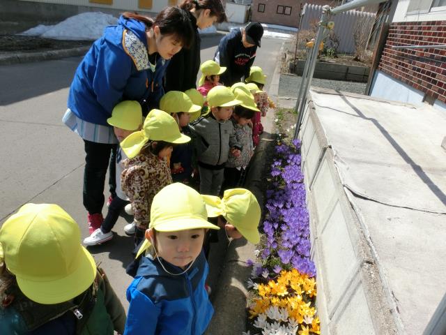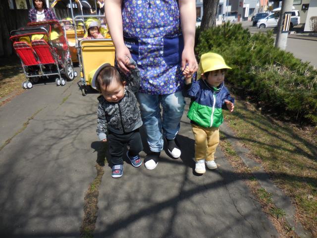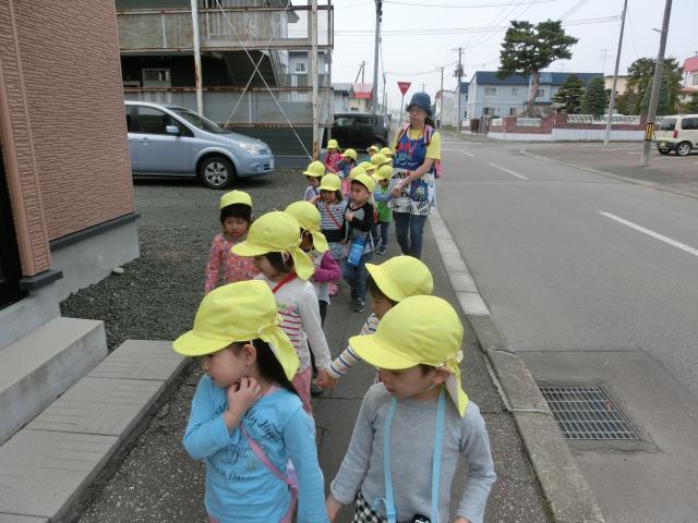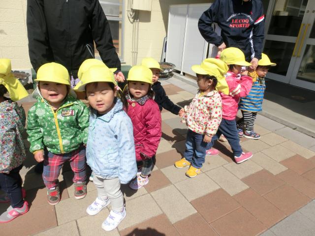 たんぽぽ組さんは、進級してから初めてお散歩へ行ってきました。