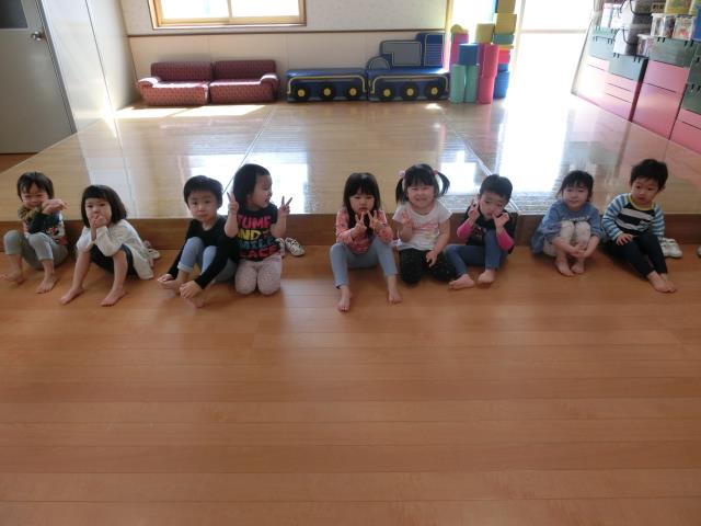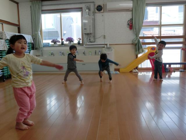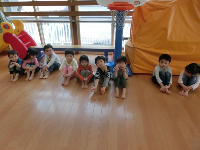 ちゅうりっぷ組さんは、リズム運動をして体を動かしました。