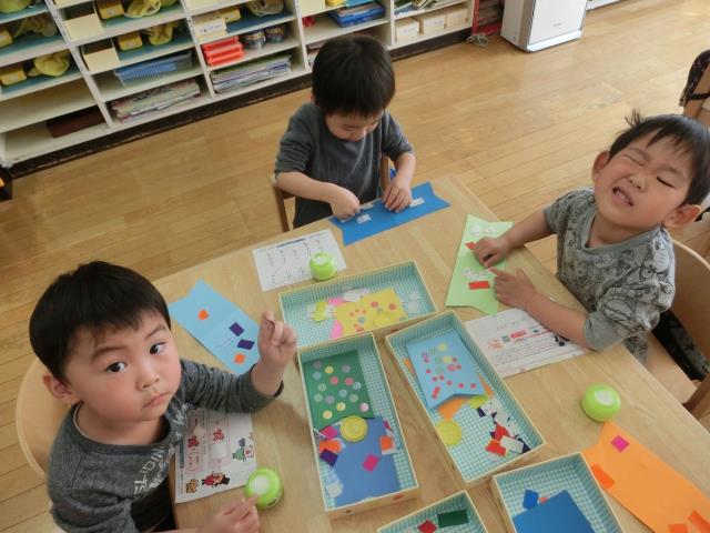 みんなハサミは真剣に、のり付けは楽しそうにやっていましたよ。