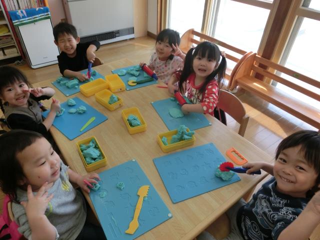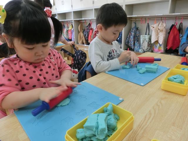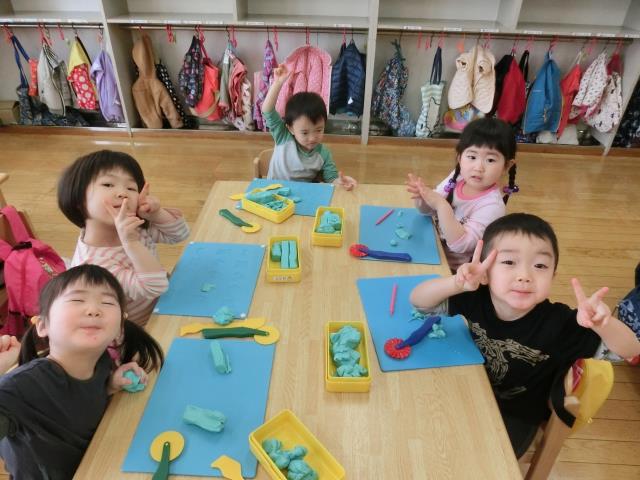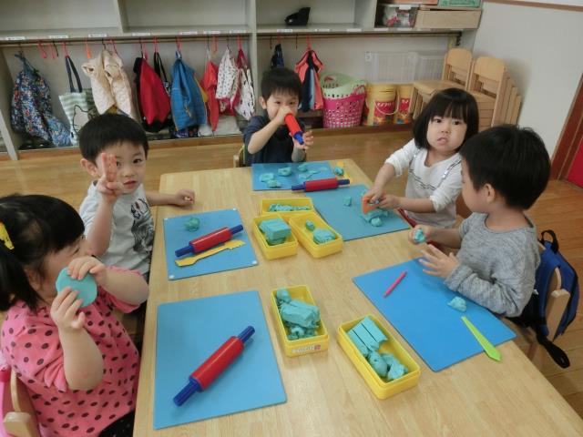 ちゅうりっぷ組さんは”粘土”で遊びました。