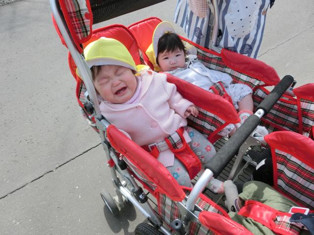 今までは『抱っこ』でお散歩していましたが、『ベビーカー』は初めてのため、ちょっぴりビックリして泣いてしまったお友だちもいました。