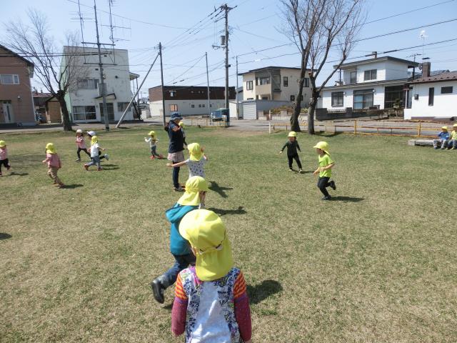公園では みんなで ”氷おに” をして走り回ったり、「よーいドン!」で競走したり。