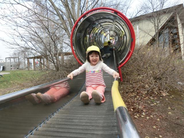 ローラーのすべり台を何度も楽しんだ後、広場の端へ向かってダッシュし始めた子ども達。
