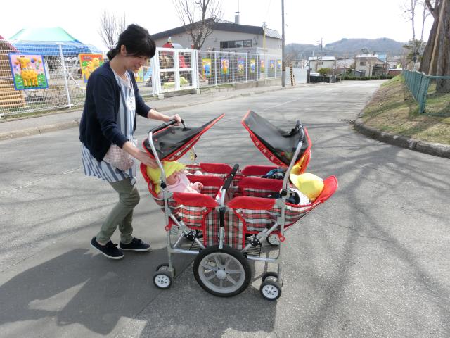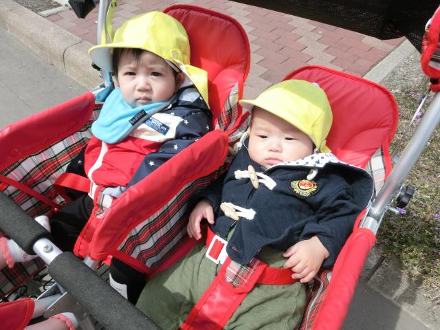 今年度 4月に入園した”ひよこ組のお友だち”が、初めてベビーカーに乗り、お散歩に出かけましたよ!