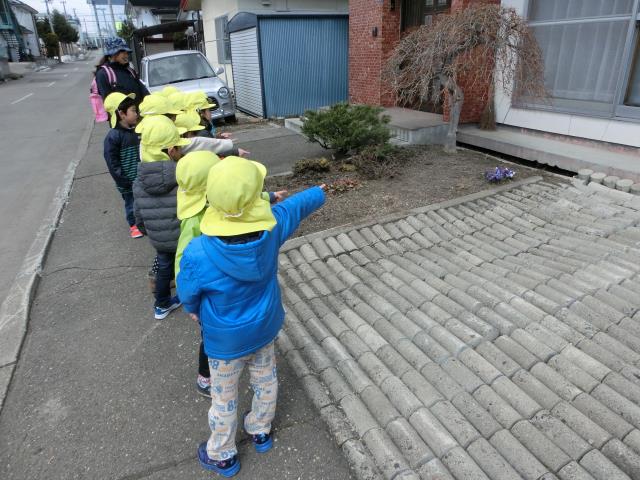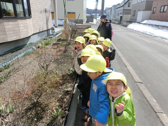 ”ふきのとう”や”うさぎさん”、よそのお家のお庭にキレイなお花もありました。