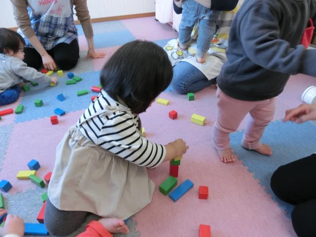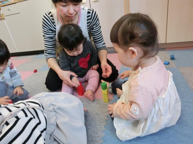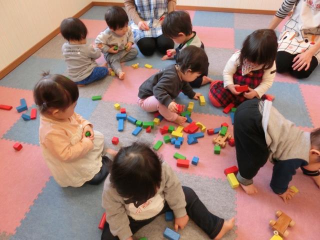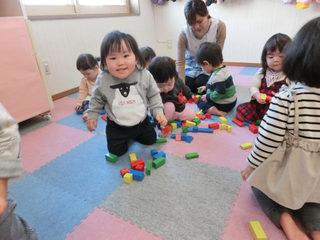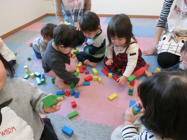 ひよこ組さんは、今日は『積み木』で遊びました。