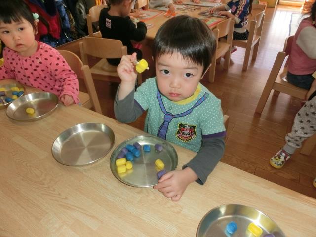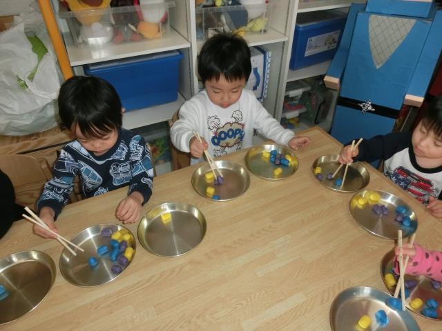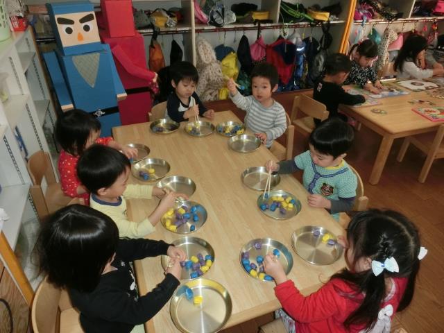 たんぽぽ組さんは、お箸の練習をしてみました。
