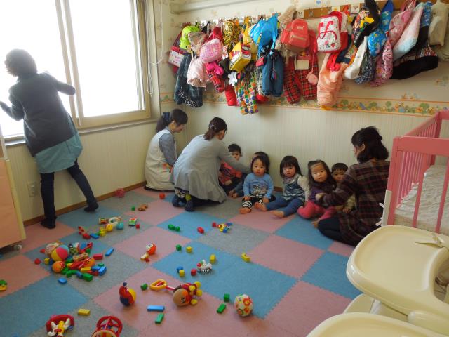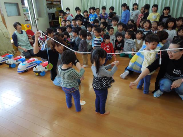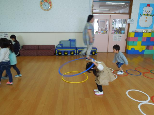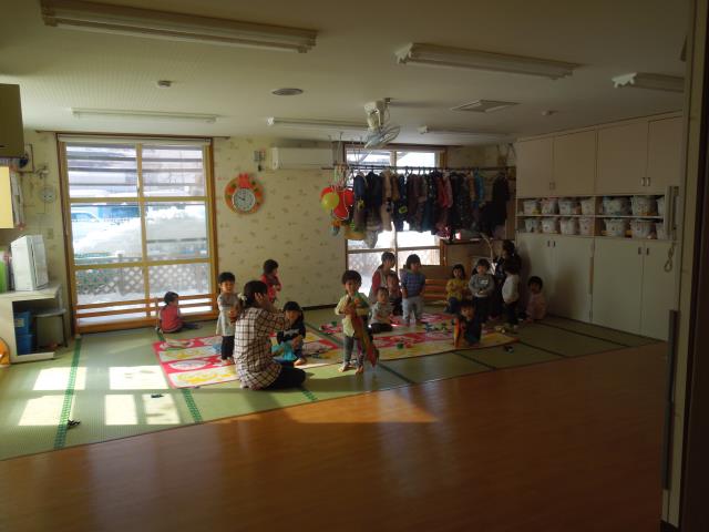 まずは、ホールでご挨拶をしてから3歳・4歳・5歳のお部屋へ。