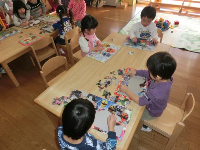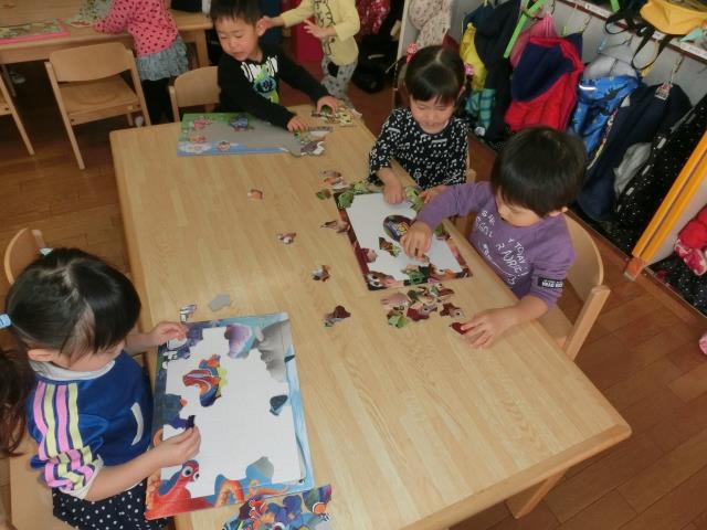 順番待ちのお友達は、パズルをして楽しみながら待っていました。