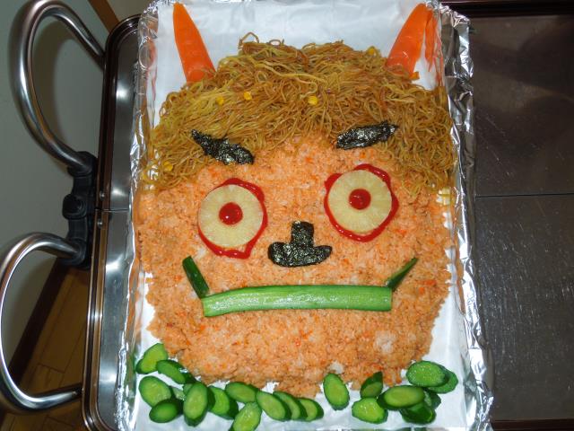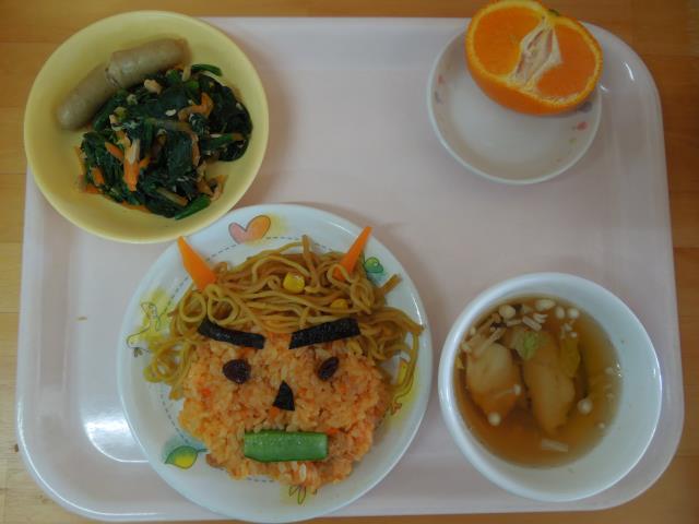 給食には、小鬼のチキンライスを食べて厄払いをしました。