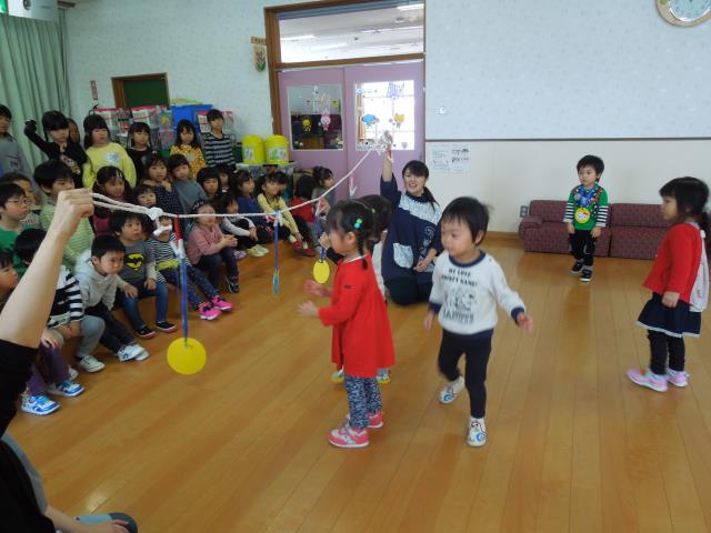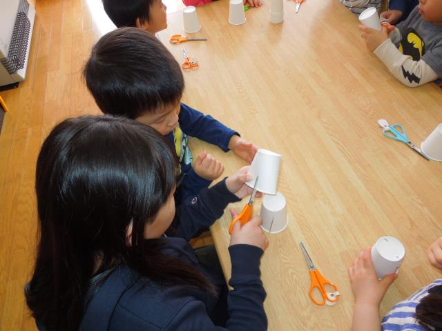 ちゅうりっぷ組さんでは『パクパク人形作り』と『新聞ジャンケン』を、教えてくれました。